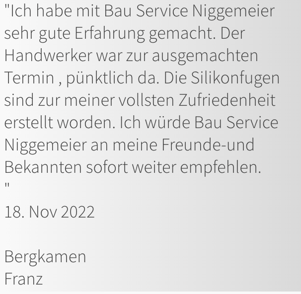 Da uns vom Bau Service Niggemeier (BSN) Ihre Zufriedenheit am Herzen liegt, legen wir größten Wert auf Qualität und Kompetenz bei der Ausführung unserer Arbeiten.