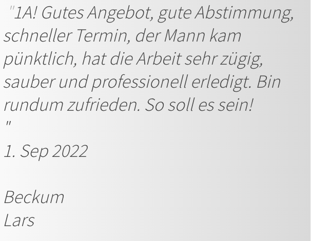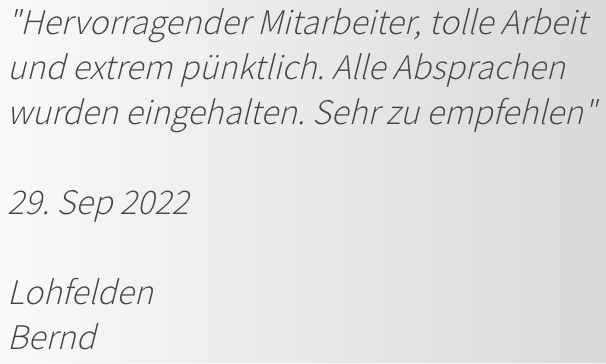 Durch jahrelange Erfahrung und engen Kundenkontakt wissen wir, worauf es ankommt und haben uns zum Ziel gesetzt, jeden Kundenwunsch zur vollsten Zufriedenheit zu erfüllen.